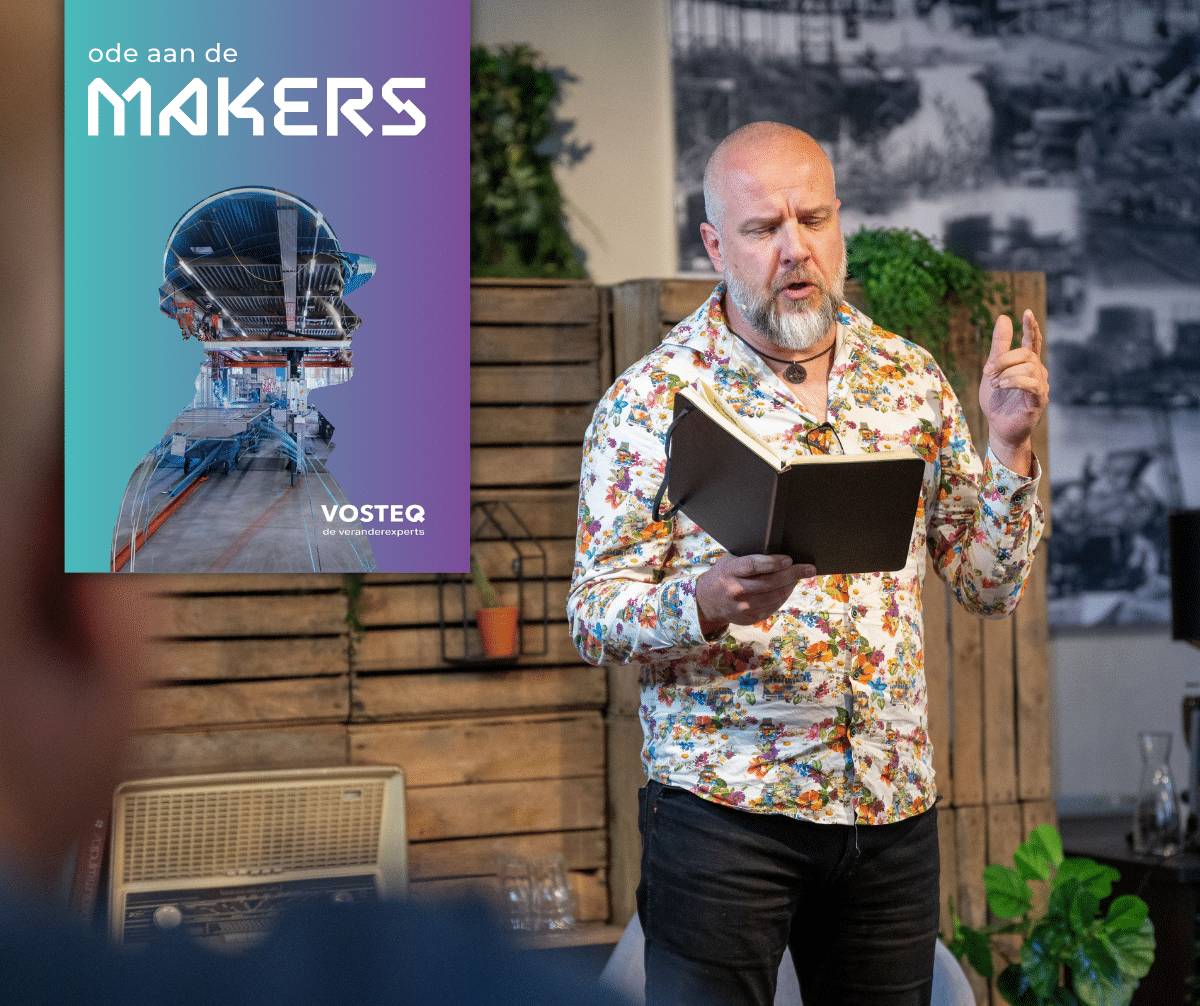 Vosteq Veranderexperts vierde afgelopen week haar 20-jarig bestaan met een inspirerende bijeenkomst die volledig in het teken stond van de maakindustrie. Onder het motto ‘Ode aan de Makers’ werden ondernemers en maakbedrijven getrakteerd op een programma dat een blik wierp op de toekomst én handvatten bood om daar vandaag al mee aan de slag te gaan.